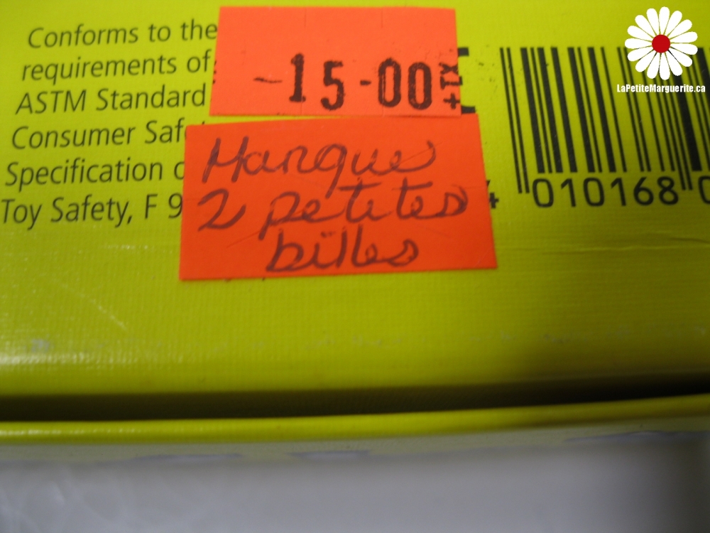 Manque 2 petites billes. Le prix de la poste peut augmenter avec l'achat jouets et de livres vu le poids et la dimension de ceux-ci.
