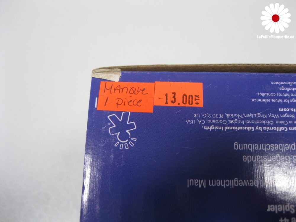 Manque 1 pièce. Le prix de la poste peut augmenter avec l'achat de jouets et de livres vu le poids et la dimension de ceux-ci.
