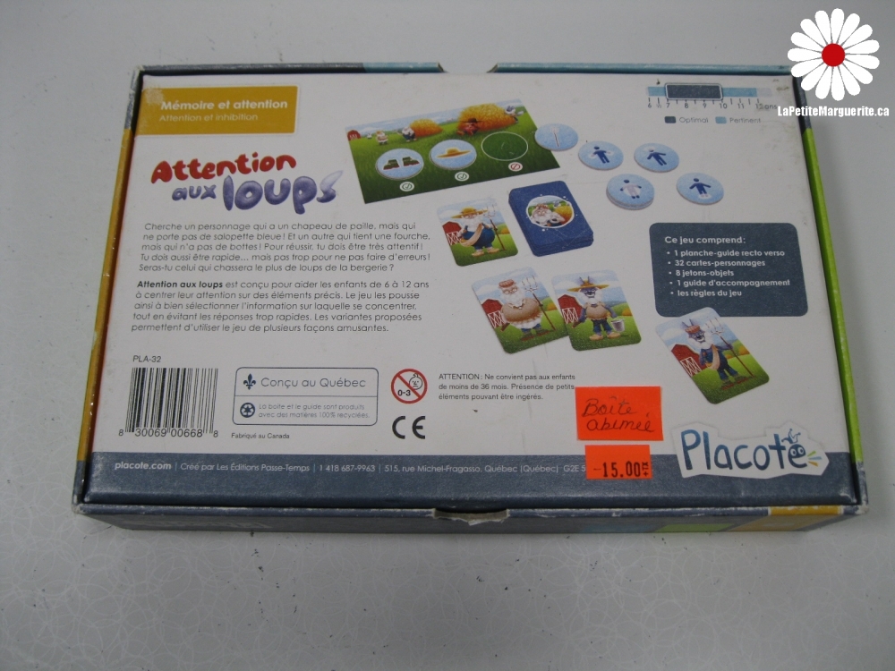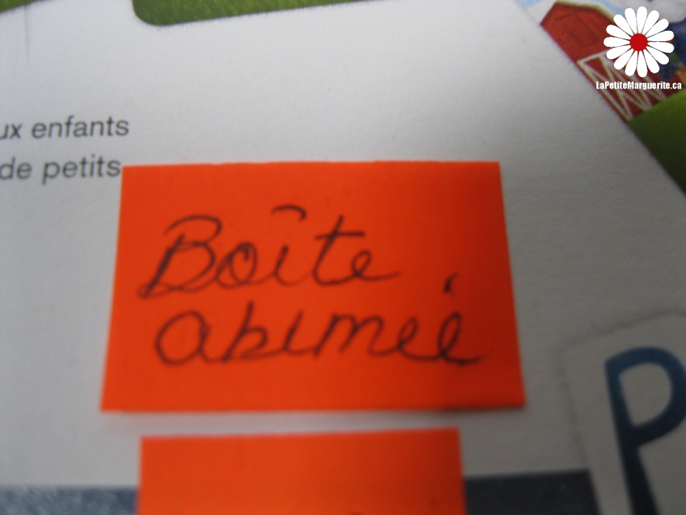 Boîte abimée. Le prix de la poste peut augmenter avec l'achat de jouets et de livres vu le poids et la dimension de ceux-ci.