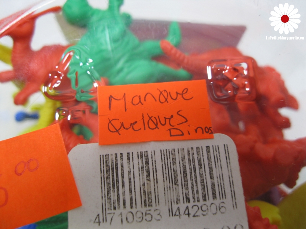 Manque quelques dinosaures dans le seau. Le prix de la poste peut augmenter avec l'achat de jouets et de livres vu le poids et la dimension de ceux-ci.