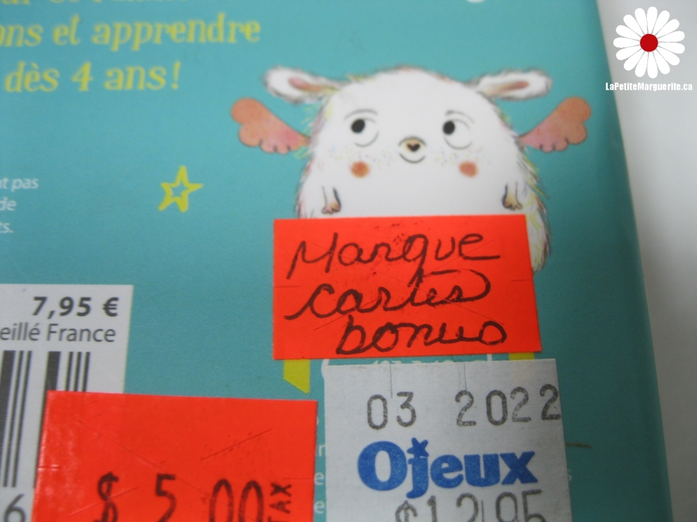 Manque cartes bonus. Le prix de la poste peut augmenter avec l'achat de jouets et de livres vu le poids et la dimension de ceux-ci.
